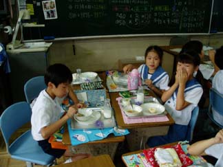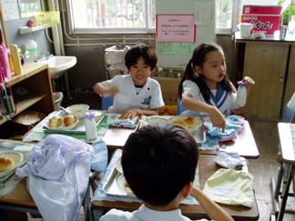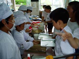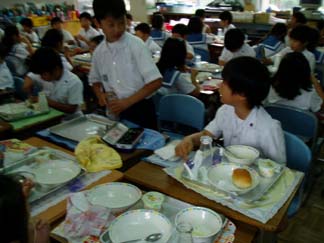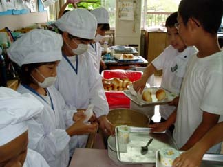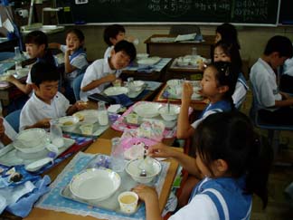 | はい。順番をまもってね | 「手を合わせて、いただきま〜〜す。」 |