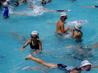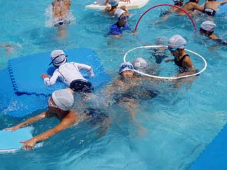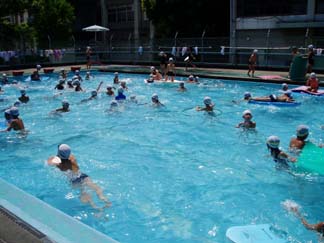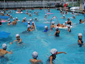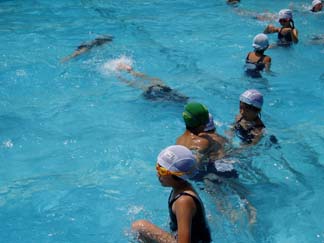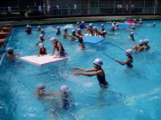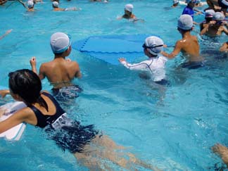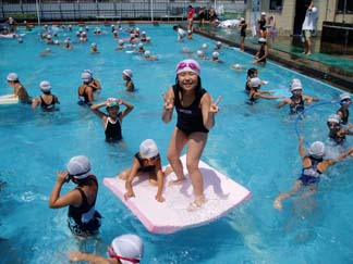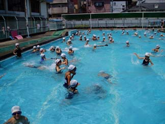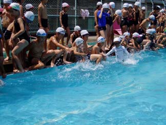 7月23日。算数の国への冒険のあとは、気持ちよくプール水泳です。