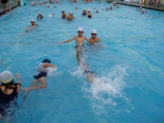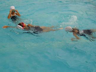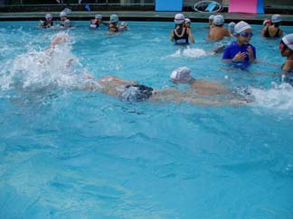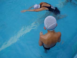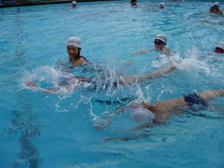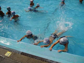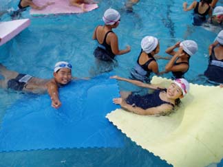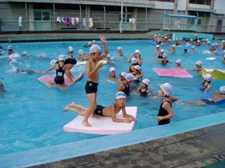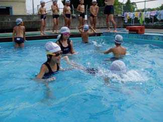 けいじばんに、更衣室のたなの状態のことで書き込みがありましたので、ちょっと更衣室をのぞいてみましょうか。子どもはいませんので安心して入ってください。