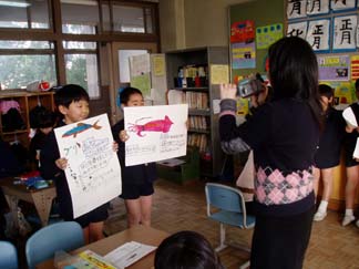 | 「さあビデオで撮ってみるよ。3.2.1.キュー!」 | 「紙の持ち方を相手に見えるようにするには?」 |