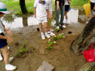 | ここにも花だんをつくりたい | ようし。今日は水田で田植えするぞ |