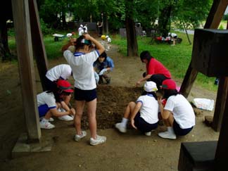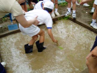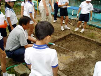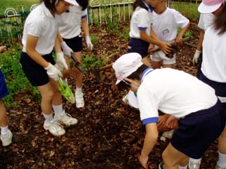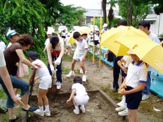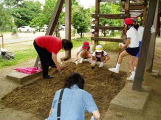 | 1かぶ1かぶ ていねいに | ほら こうやって植えるんだよ<土名人のご指導 |