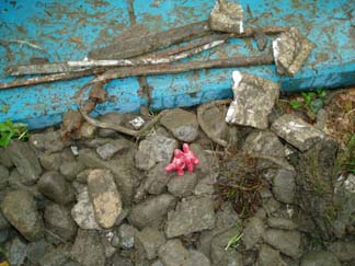 ←なぞの水田をほりかえすと、こんなにゴミがでてきました。 |