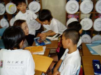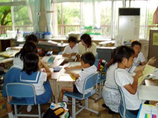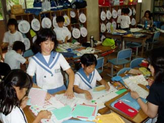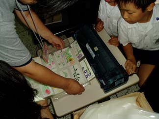 | ターミネーター……いや「ラミネーター」でのしおりづくりも、今日は保護者の方がついてアドバイスしてくださってスムーズでした。 | 発表の準備もちゃくちゃくと… |