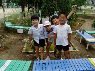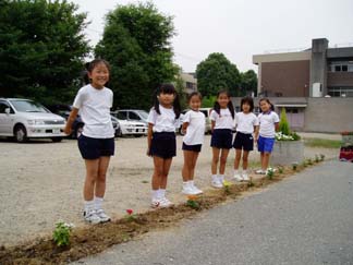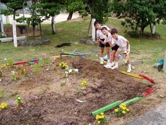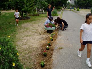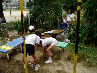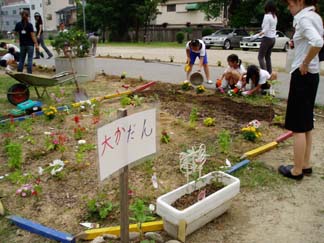 | 大花だん完成記念撮影 | ターザンロープ出発地点クローバー化計画 |