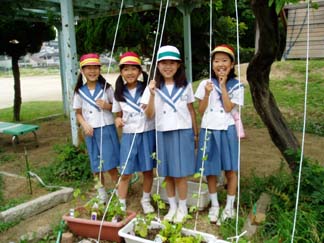 | リハーサル準備もこれでばっちり! | ほら、朝顔トンネルもこんなに大きくなったよ |