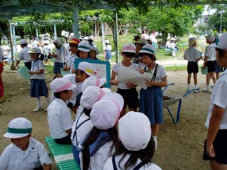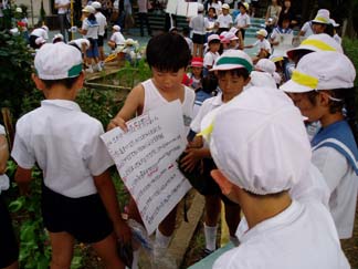 | 発表しながらも、問題点を反省してすぐに修正 | 田植えを体験してもらえるように準備です |
