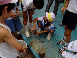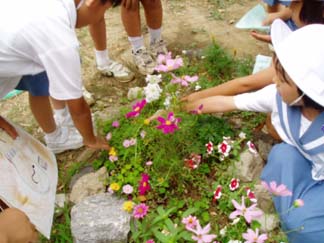 | アンケートをかいてください | ほらこれが「はなさかじいさんの土」です。さわってみてください。 |