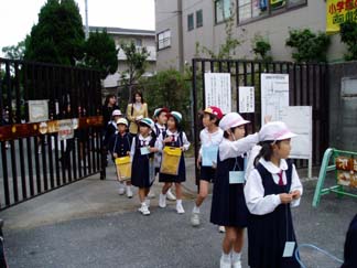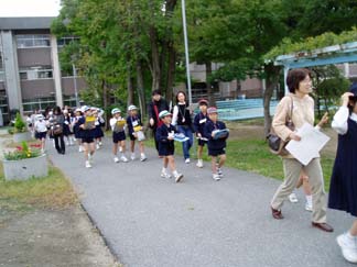 | さあ、青空教室にあつまってね | えっ。保護者の方がいない? えっ。行かない予定だったけどやっぱり行く? えっ。えっ。おっ。はい!ちょっと出発時に混乱しました。 |