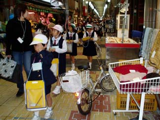 | インタビューやお願いの内容はグループによって様々です | 商店街の入り口のハムやさん |
