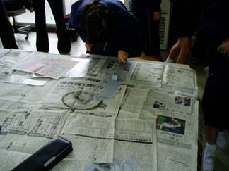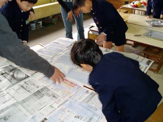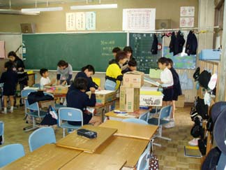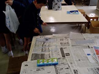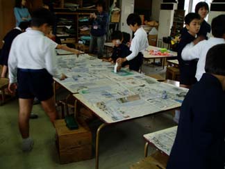 | ここは、図工室。ここでは | 商店街のタイルリニューアル完成式典でかざってもらえるパネルを作っています |