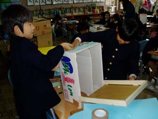 | このグループはくじ引きを作りました | 色紙できれいな かぶとですね。景品ですか? |