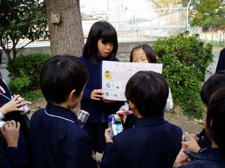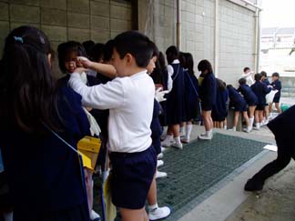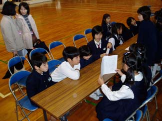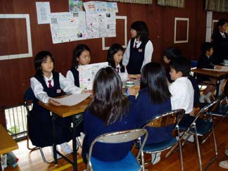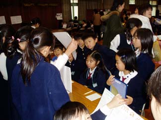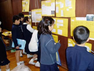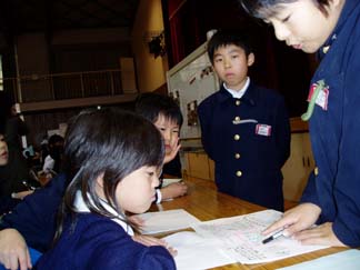 | 4人組の生活班で回ります | 4年生も3年生も真剣です。 |