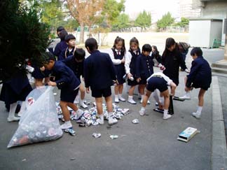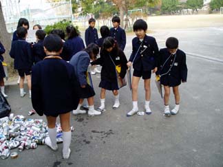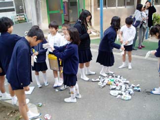 | 外では、アルミ缶清浄、つぶし体験ができます | たくさんのアルミ缶です |