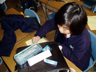 | 教室で最後にワークシート書きます。 | これも一生懸命です。 |