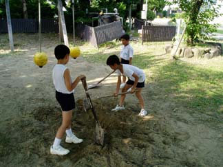 安全にすることを考えています。シャベルの使い方も上達しましたね