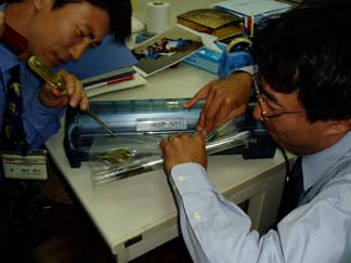 入れる方向をまちがえたみたいで、おくのローラーまでからまってしまいました。