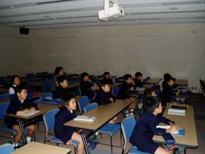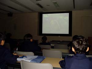 | ビデオなども使って学習を進めました。 | 真剣に講義を聴く子ども達の様子 |