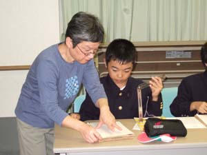 | 1学期に続き、点訳の機械を使って | 点字を作ってみました。結構難しい。 |