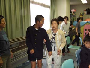 | 今日は、盲導犬も見ることができました。 | エスコートの体験もしました。 |