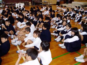 | 創作ダンスも発表できました。 | 3年生も真剣な表情で聞いています。 |