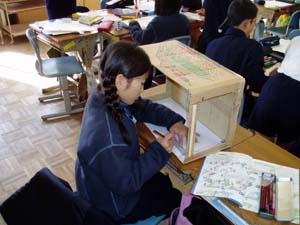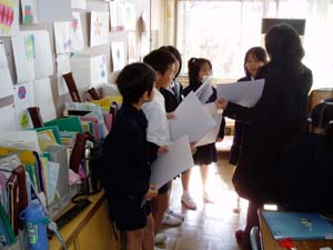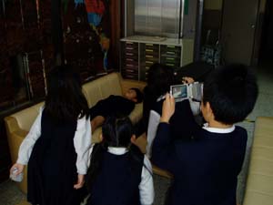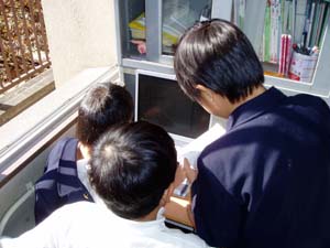 | 私たちは集計したものをまとめよう。 | 自分たちで作ったビデオのチェック中 |