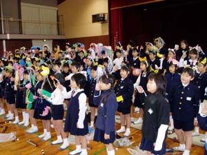 | もう練習も少ないから気持ちをこめましょう。 | 待機席の確認をしています。 |