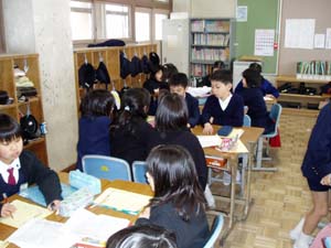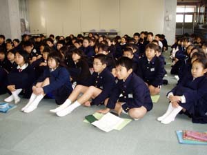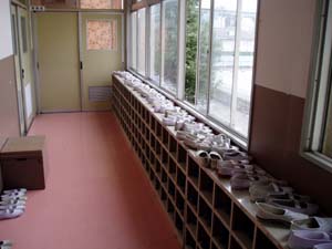 | 見よ!この整頓された上靴! | 多目的室で待つ態度もいいものに成長! |