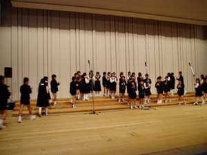 | 舞台の上でのボディパーカッション | みんなでメモリーを演奏しています。 |