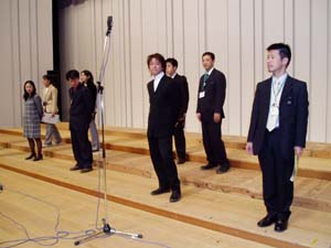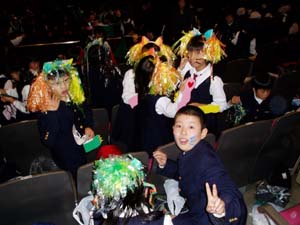大阪コミックバンドのみなさん あっコミックは4年生担任だけですよ… 直前の楽屋では、必死の練習が 繰り広げられていました。 ←見づらいですが、ご勘弁を… |