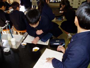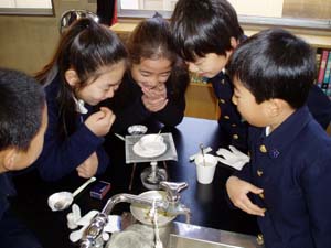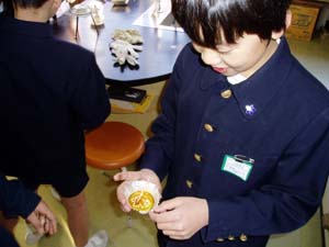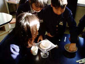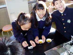 | 試食…甘い!(砂糖だから当然ですが…) | 勉強もしたよ。感想を教科ノートとして… |