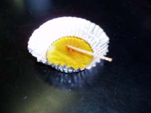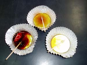 | できました!なんと美しい色に… | おいしそうなアメになったよ。見て! |