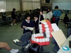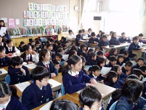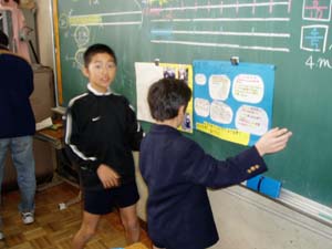 | 虫歯予防のことをしっかりと発表しています。 | こちらはカルタ大会の準備ですね。 |