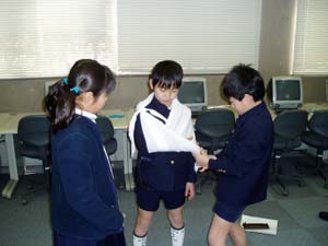 | ケガの手当のリハーサルです。 | 漫才チームの最終ネタ合わせ |