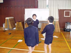| ここらへんに貼れば見やすいかなぁ? | ストレッチの模範演技をしています。 |