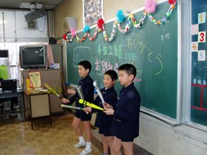 | 4年生の1年間…さようなら | プレゼントをもらって涙ぐむ根岸先生… |
