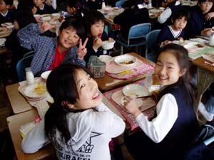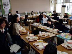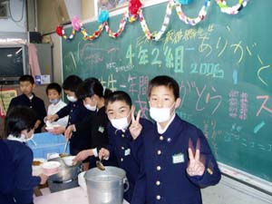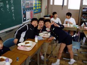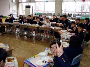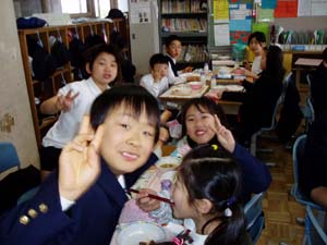 | 3組 福笑いゲーム | 給食も楽しい雰囲気で食べています。 |