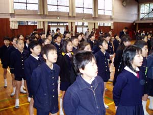 | 校歌をうたいましょう。 | 花はゆかしい桃の花〜♪ |