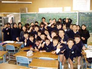 | 1組のクラス写真…橋本先生ありがとう | 2組では、今までの思い出スライドショー |