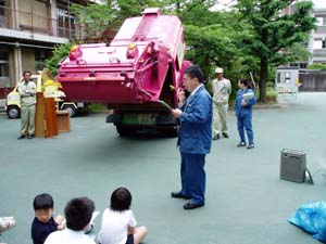 今日は、ゴミやリサイクルの学習のため、大阪市環境事業局の方が来てくれました。