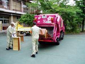 | 粗大ゴミを入れるのを目の当たりにして… | ビックリしている子どもたちの顔… |