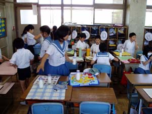 | 6年生が中心になって、給食の準備 | てきぱきと進めます。さすが! |