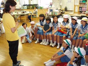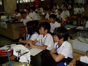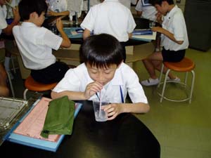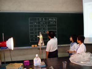 | 確かめた結果を交流しています。 | みんな、今日は、温暖化がわかったかな? |