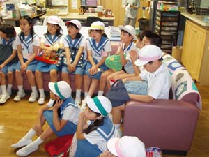 | にこにこセンターに到着! | センターの大空さんから説明を聞きます。 |