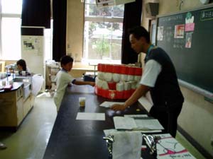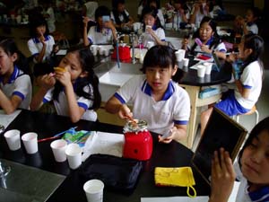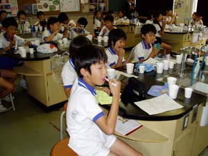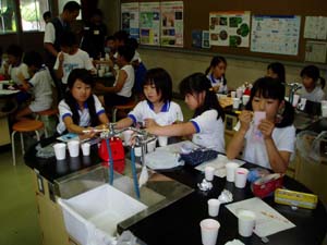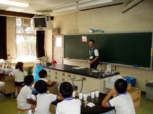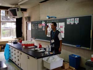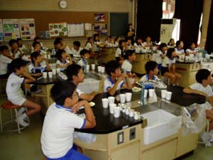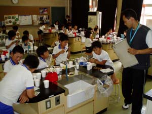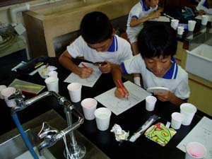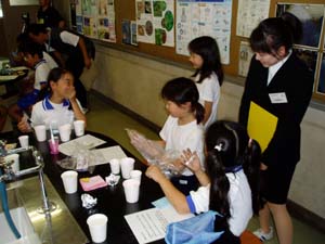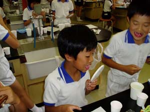 | 特殊な染料をつかっての実験です。 | 「うわ!!」って顔です。 |