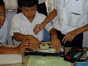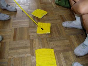 | 点字チームの点字ブロック模型 | 実際に体験してもらうつもりです。 |