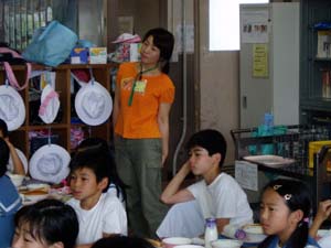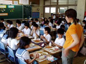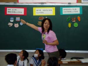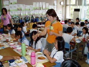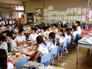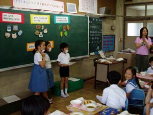 給食を教材にして、家庭科の宮本先生と栄養士の太田先生に