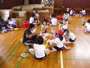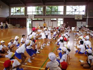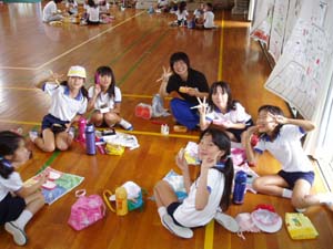 | 今回は、体育館でお弁当を食べました。 | プチ遠足気分!! |