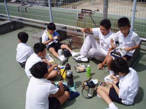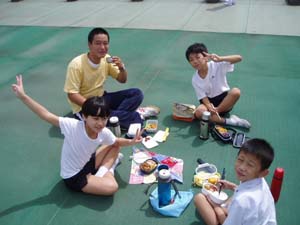 | 今日のお弁当は、屋上です。 | ちょっと暑いっすよ、先生〜 |