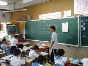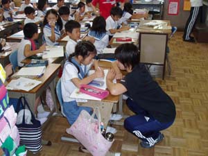 子ども達の楽しそうな顔と実習の先生方の緊張した顔の対比がおもしろいですね。